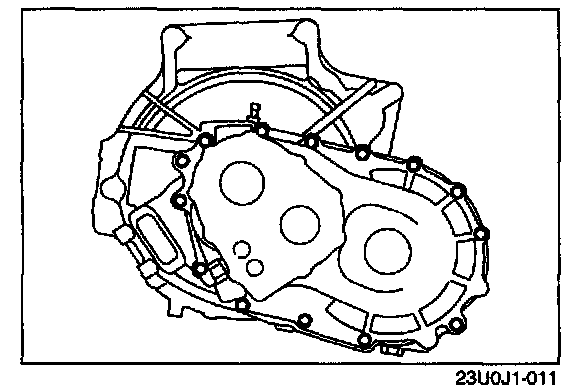1. Apply a thin coat of sealant to the contact surfaces of the clutch housing and transaxle case, tighten the transaxle case installation bolts to the specified torque.