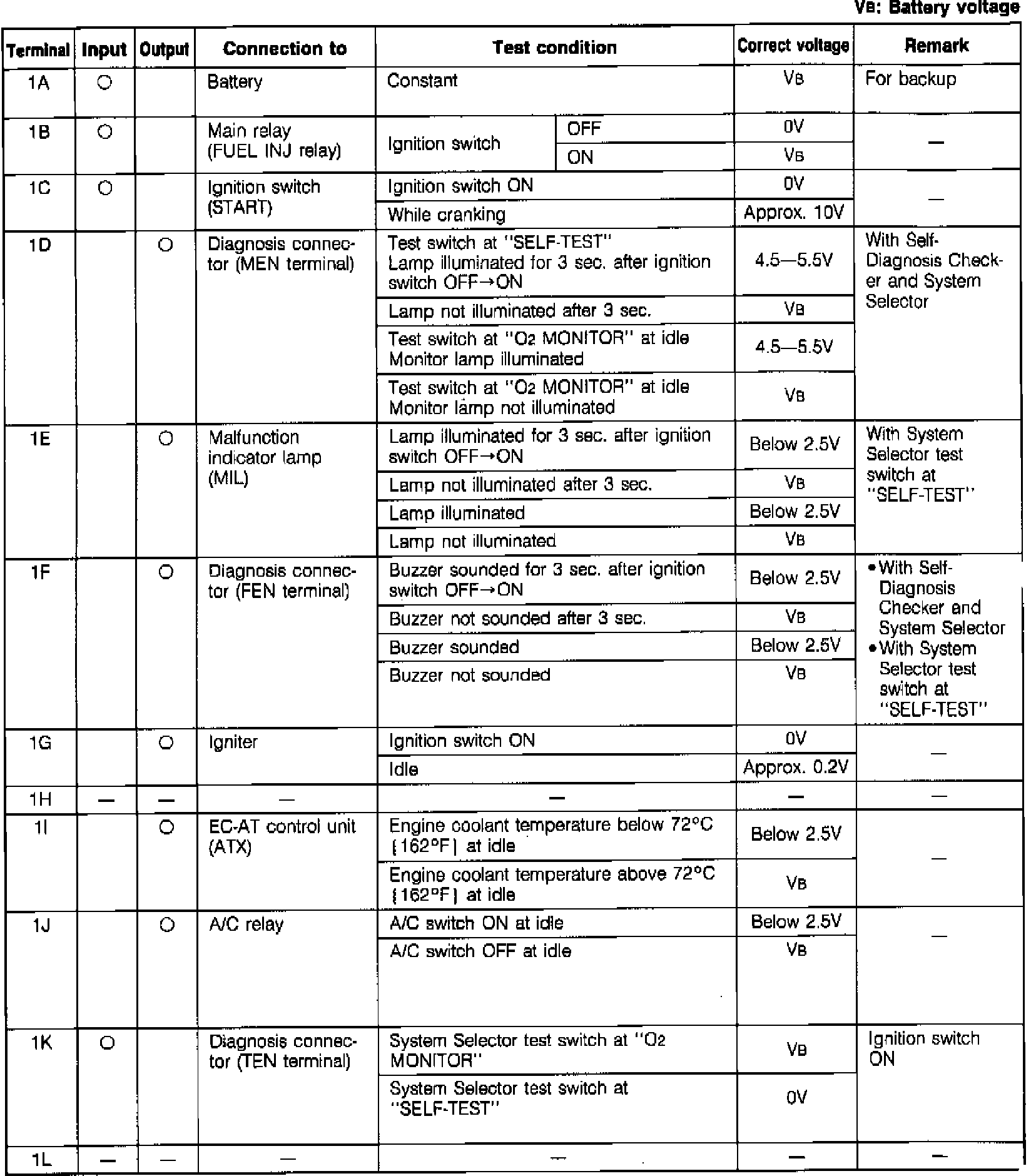 Terminal Voltage Chart: