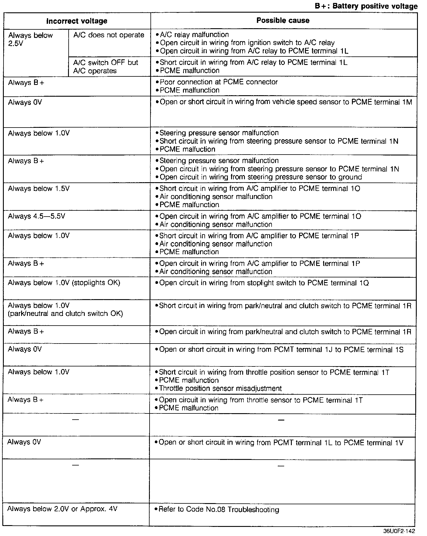 Pinout Values and Diagnostic Parameters