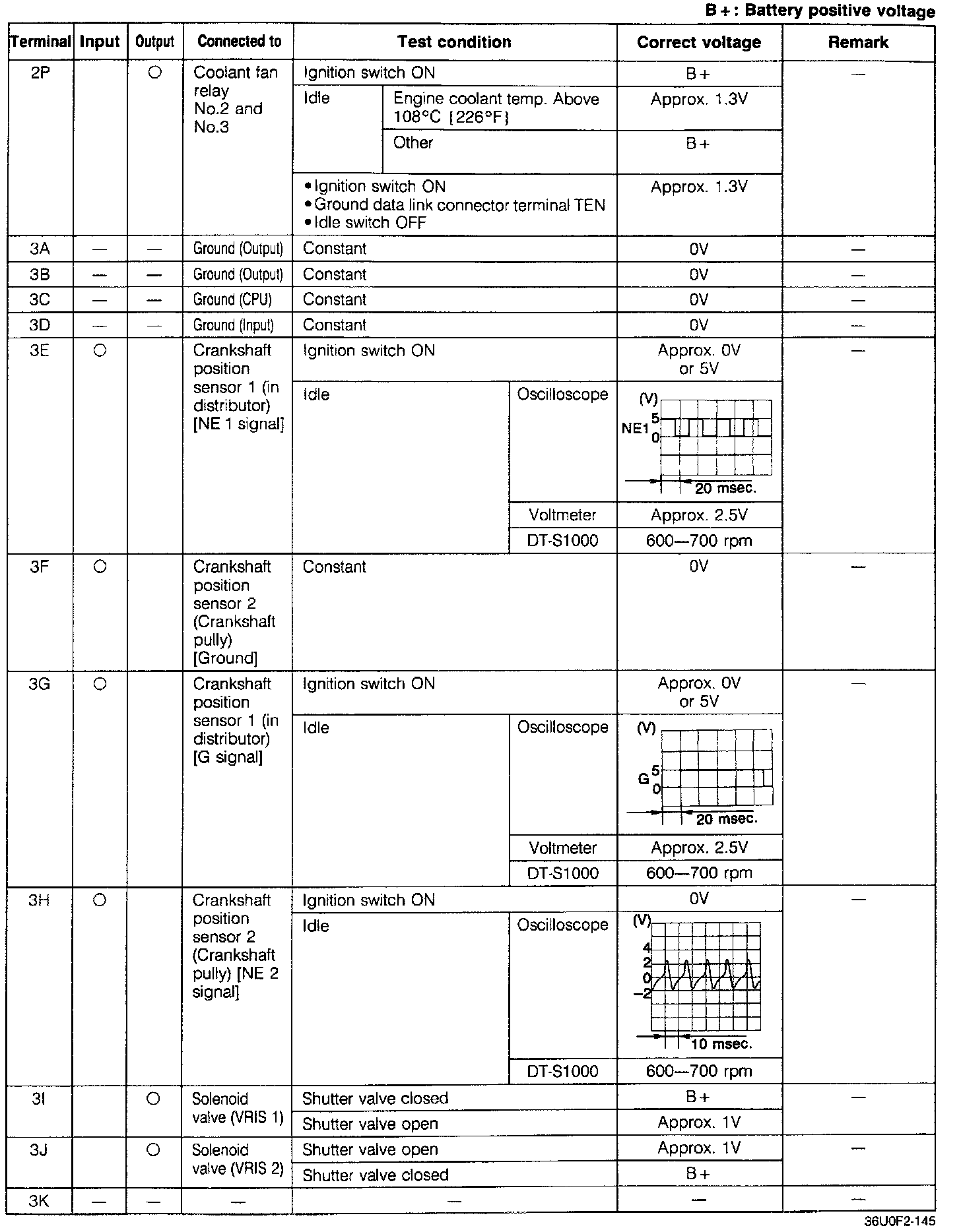 Pinout Values and Diagnostic Parameters