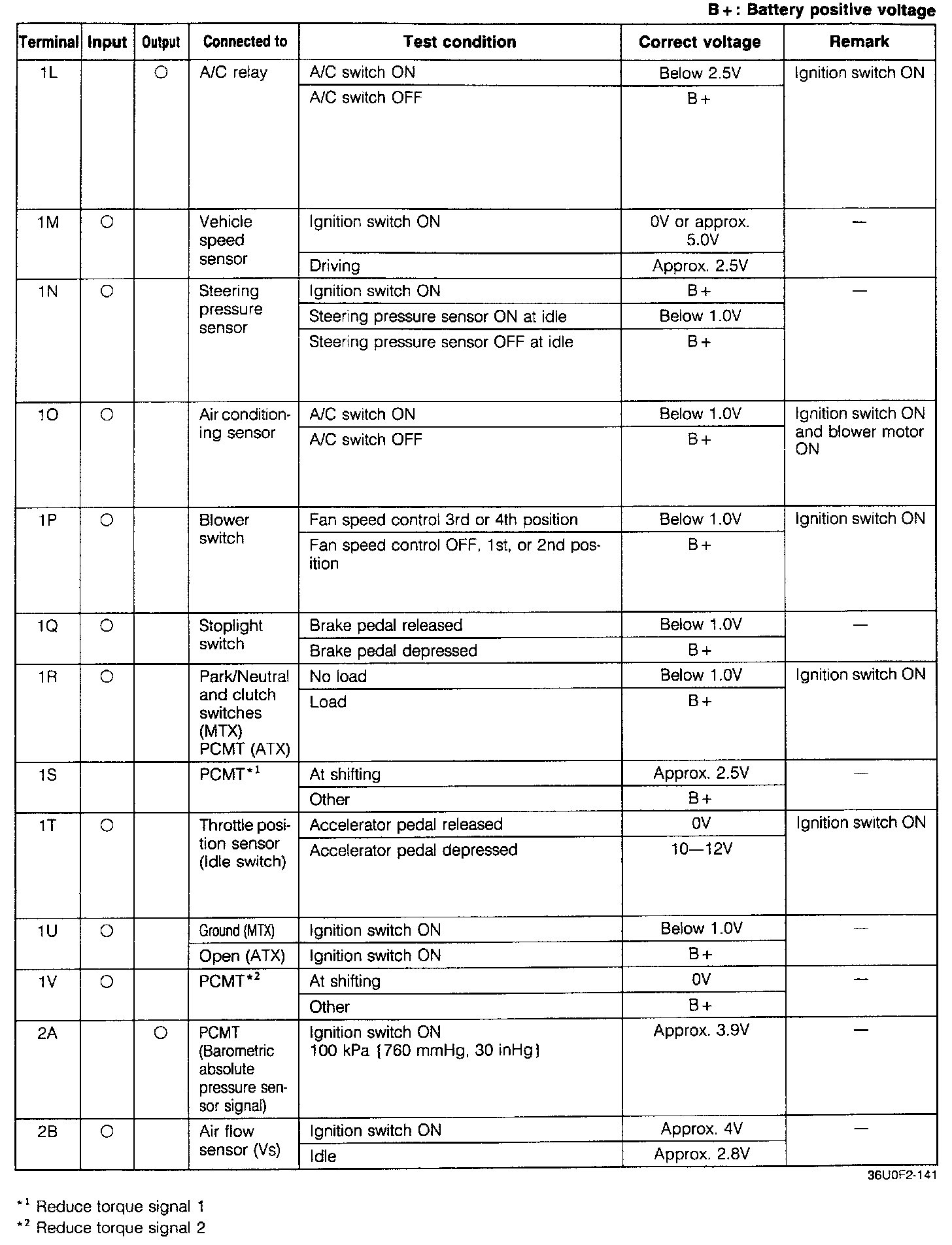 Pinout Values and Diagnostic Parameters