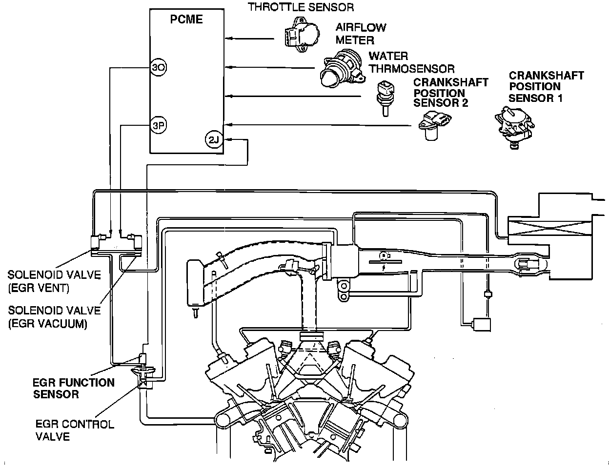 Sensor detects EGR control valve operation. Signals PCME to optimize EGR system operation through its control of the EGR vent and vacuum side solenoid valves.