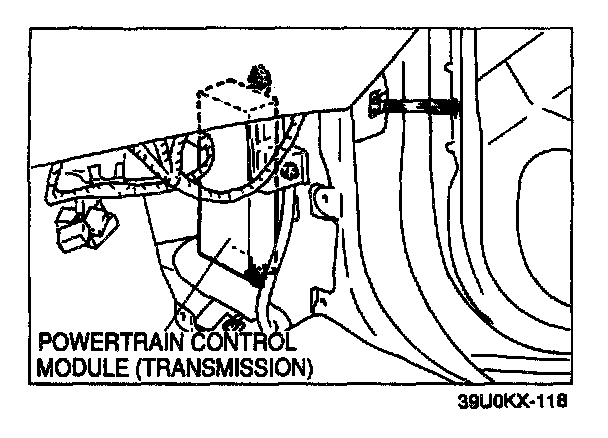 4. Remove the powertrain control module (transmission) and disconnect the connectors.