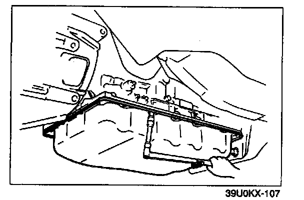4. Loosen the oil pan mounting bolts and drain the ATF into a suitable container.