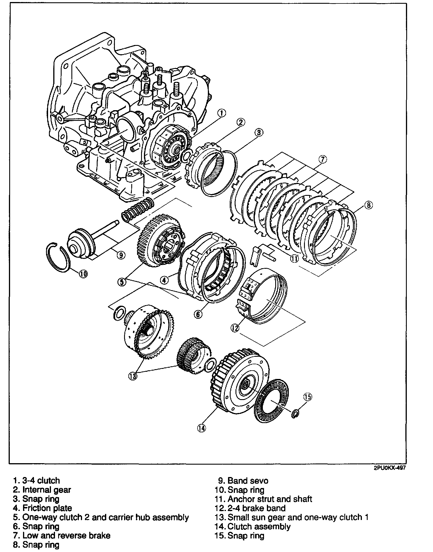 1. If the drive plates or the 2-4 brake band are replaced with new ones, soak the new part in ATF for at least two hours before installation.
