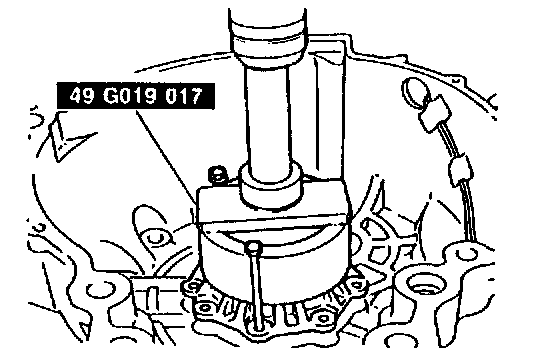 49. To ensure that the torque converter is installed accurately, measure distance A between the end of the torque converter and the end of the converter housing.