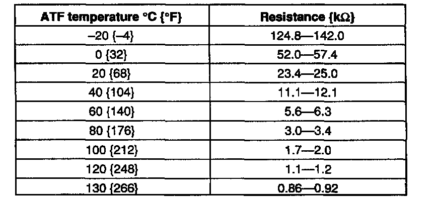 6. If not as specified, replace the ATF thermosensor and connector wiring assembly.