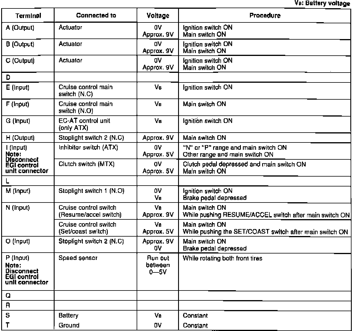 ECU Pin Voltage Chart: