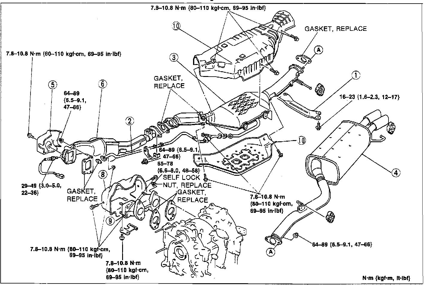 NOTE: Check stud bolt torque before installing exhaust manifold. It should be 22 - 26 ft lb (30 - 35 Nm).