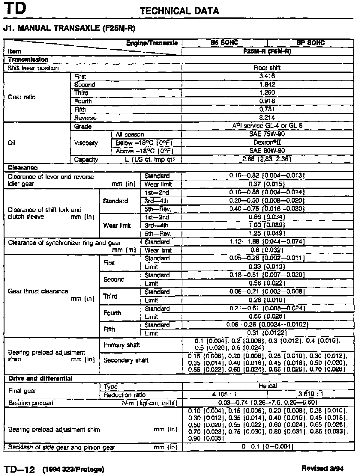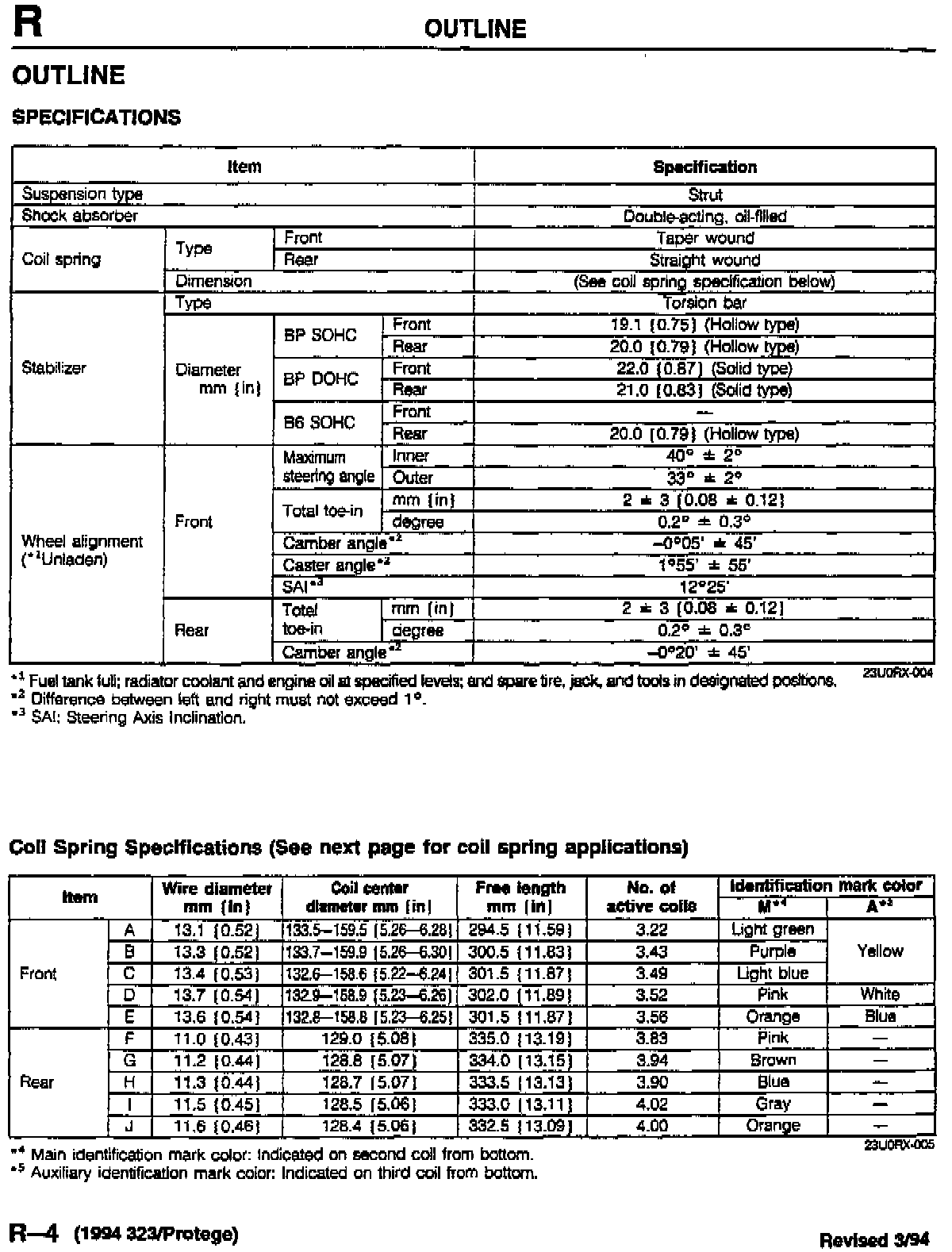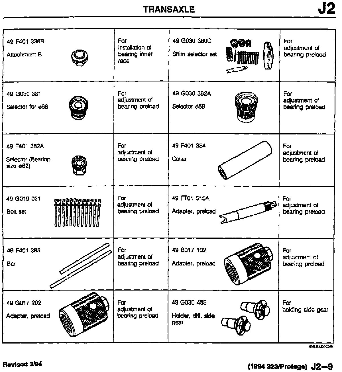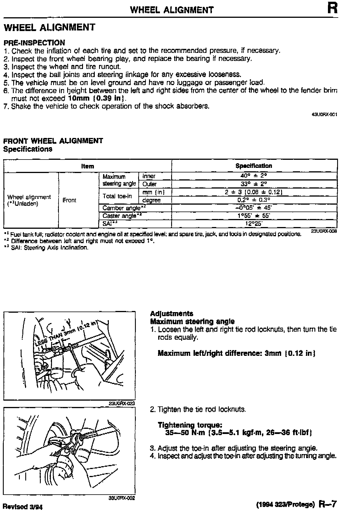 Included are replacement pages for 1994 323/Protege Workshop Manual which require correction for the following reasons: