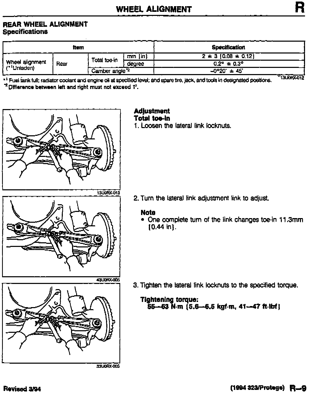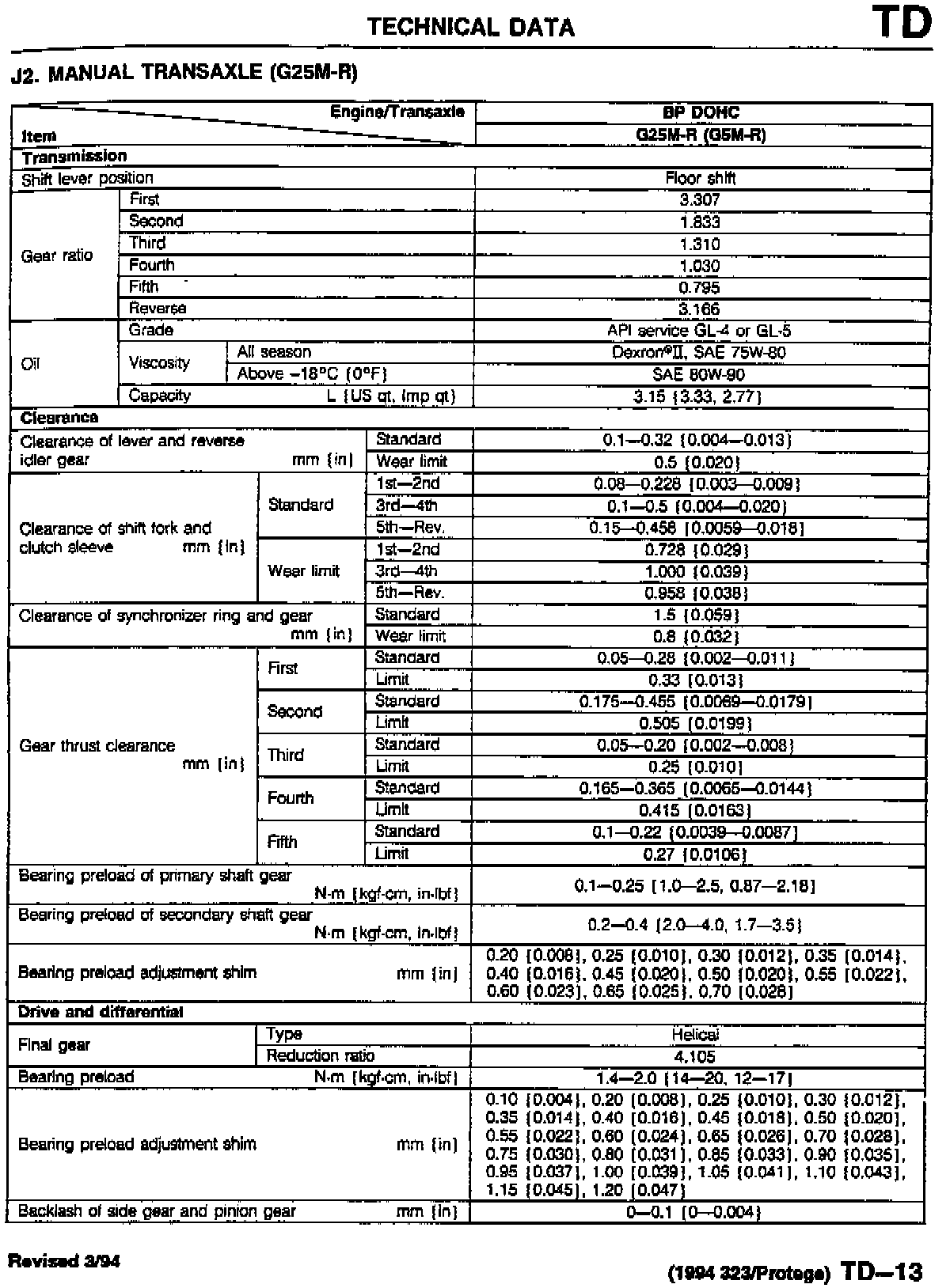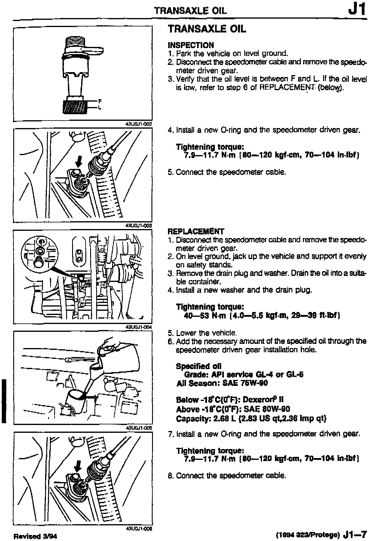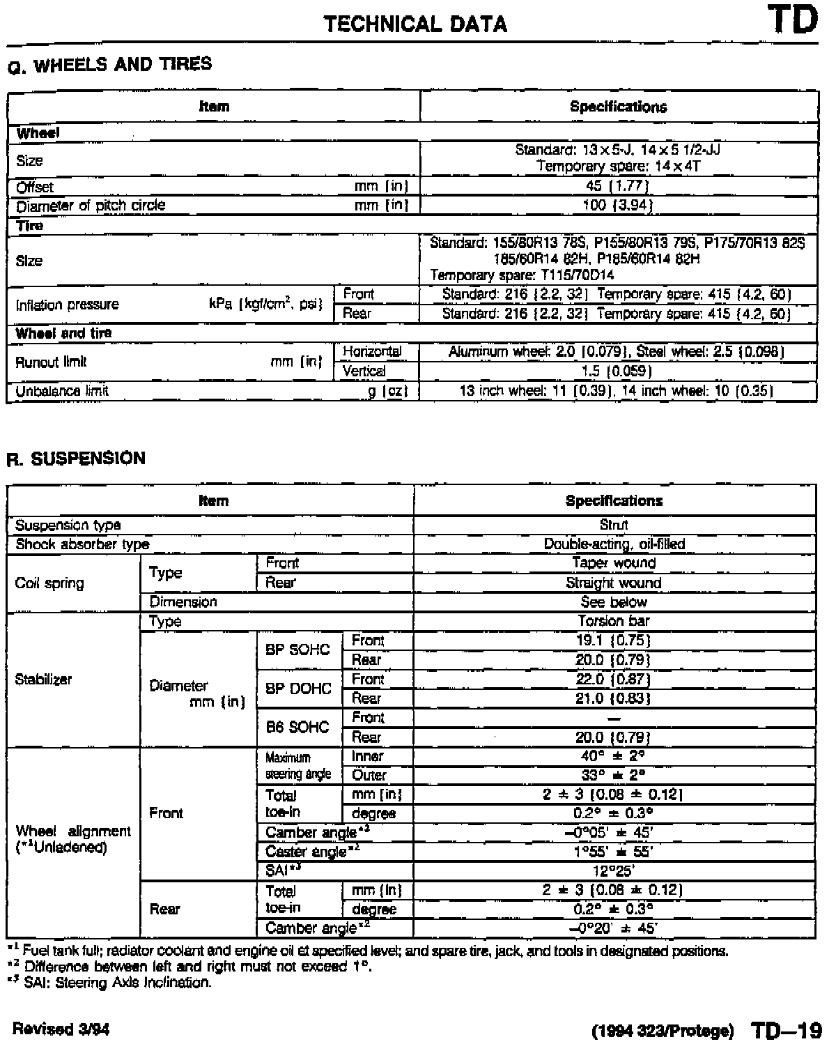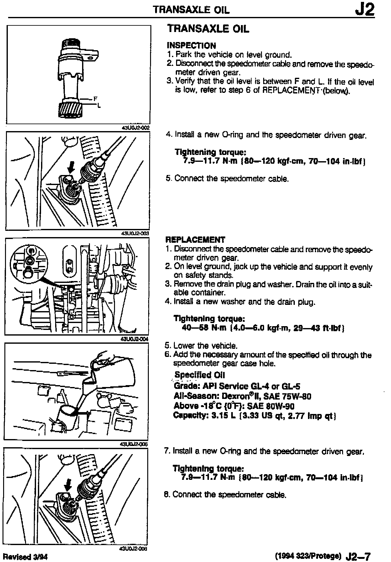 Included are replacement pages for 1994 323/Protege Workshop Manual which require correction for the following reasons:
