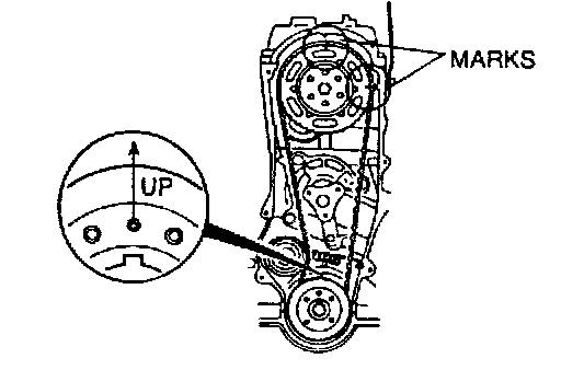 1. Verify that the timing belt pulley mark and the camshaft pulley marks are aligned with the timing marks.