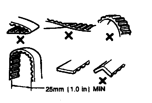 ^ The following will damage the belt and shorten its life; Forcefully twisting it, turning it inside out, bending it, or allowing oil or grease on it.