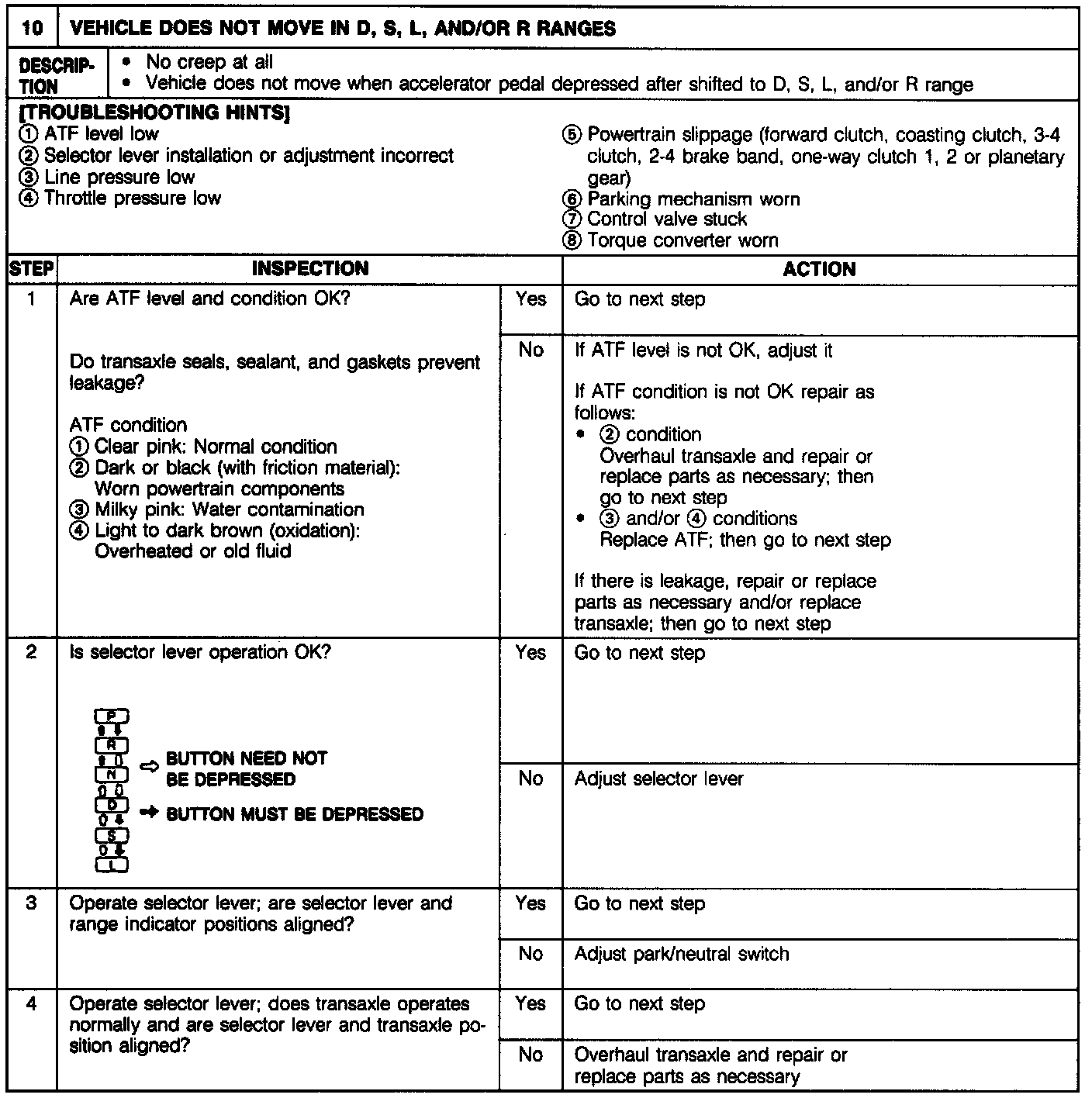 Vehicle Does Not Move In D, S, L, and/or R Ranges