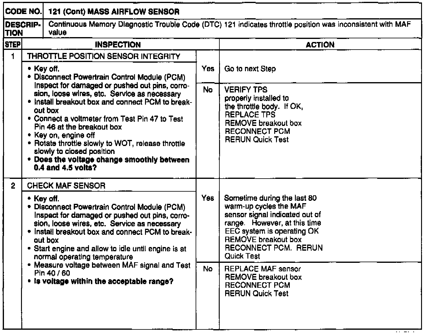 Code 121 (KOEO):