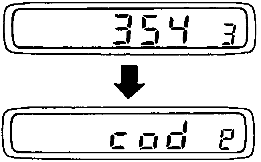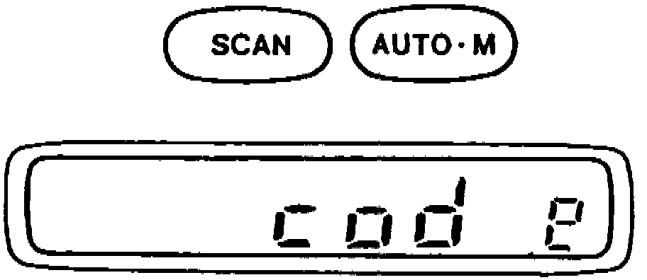 2. Press and hold SCAN and AUTO-M buttons simultaneously for approximately two seconds until "code" appears on display, Fig. 1.