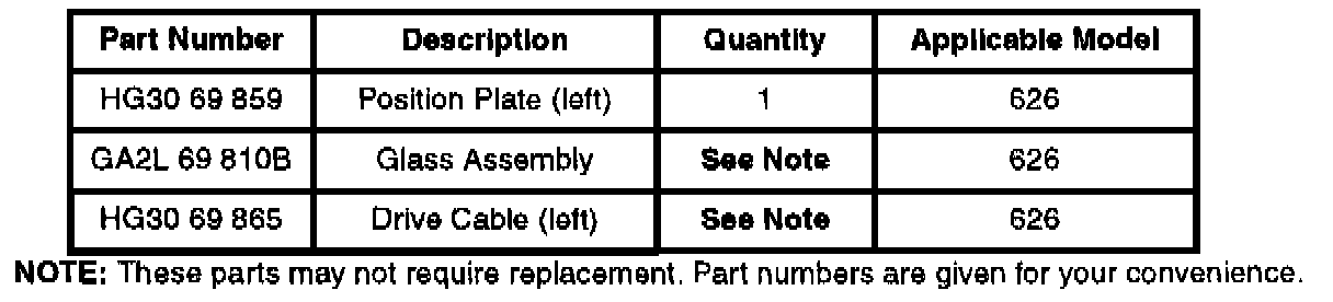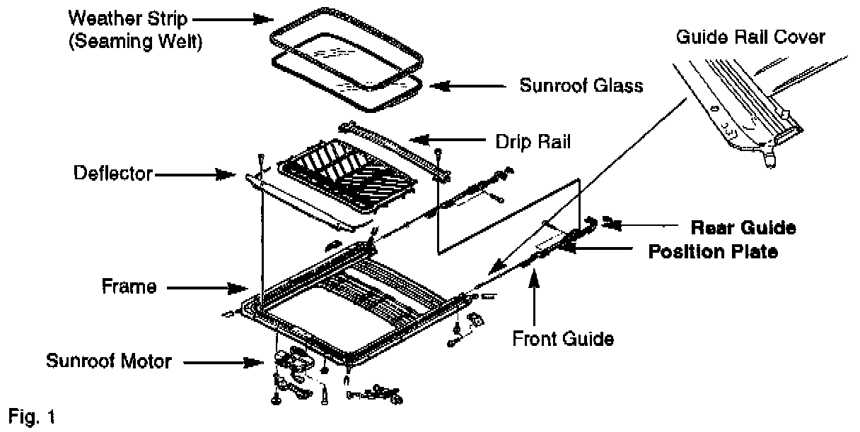 a) Sunroof Glass (Note: It sunroof motor is used to lift the panel when removing glass, be sure the motor is back in the fully closed position after glass is removed).