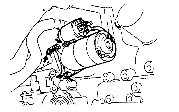 4. Install the starter to the transaxle housing. Tightening torque: 38-51 N.m (3.8-5.3 kgf.m, 28-38 ft.lbs)