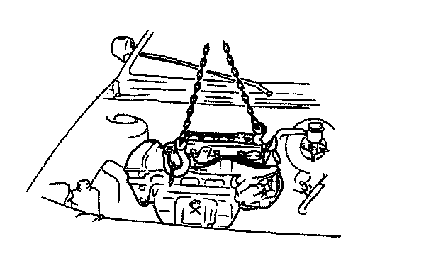 1. Suspend the engine and transaxle assembly. Slowly lower the engine and transaxle assembly as a unit. Keep the engine from swinging or bumping into components in the engine compartment.