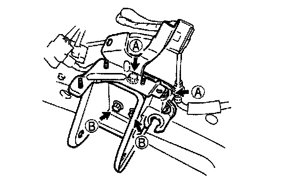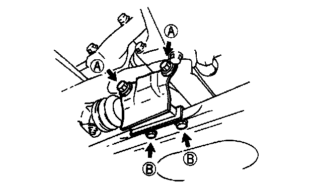 1. Hand tighten the nuts marked B. (Engine mount No.2)