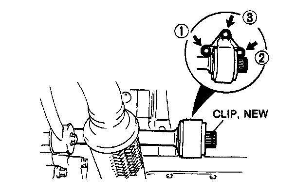 5. After installation, pull the front hub outward to confirm that the drive shaft is securely held by the clip.