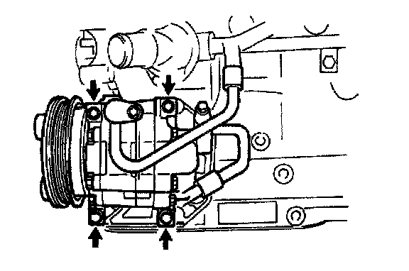 1. Install the A/C compressor to the bracket. Tightening torque: 24-35 N.m (2.4-3.6 kgfm, 18-26 ft.lbs)