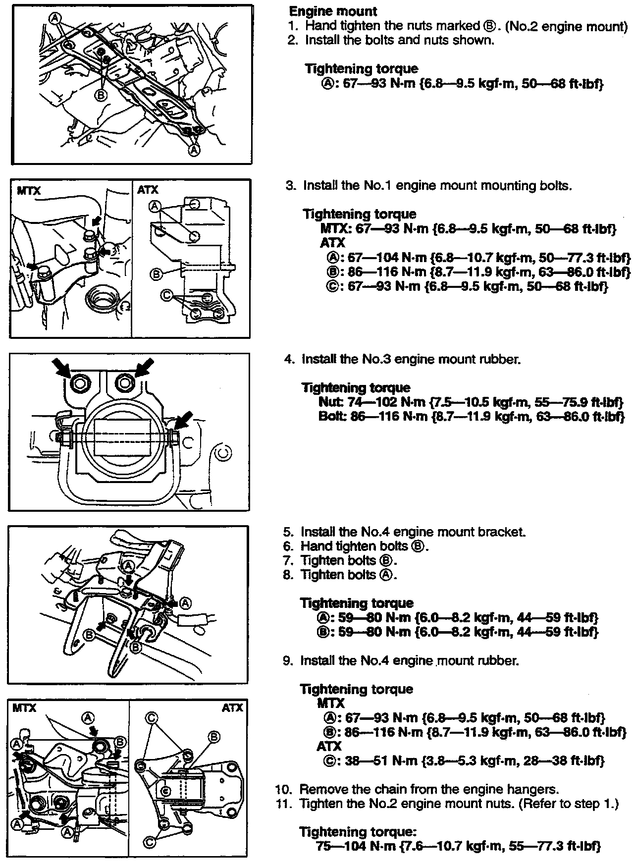 See engine mount torque specifications shown.