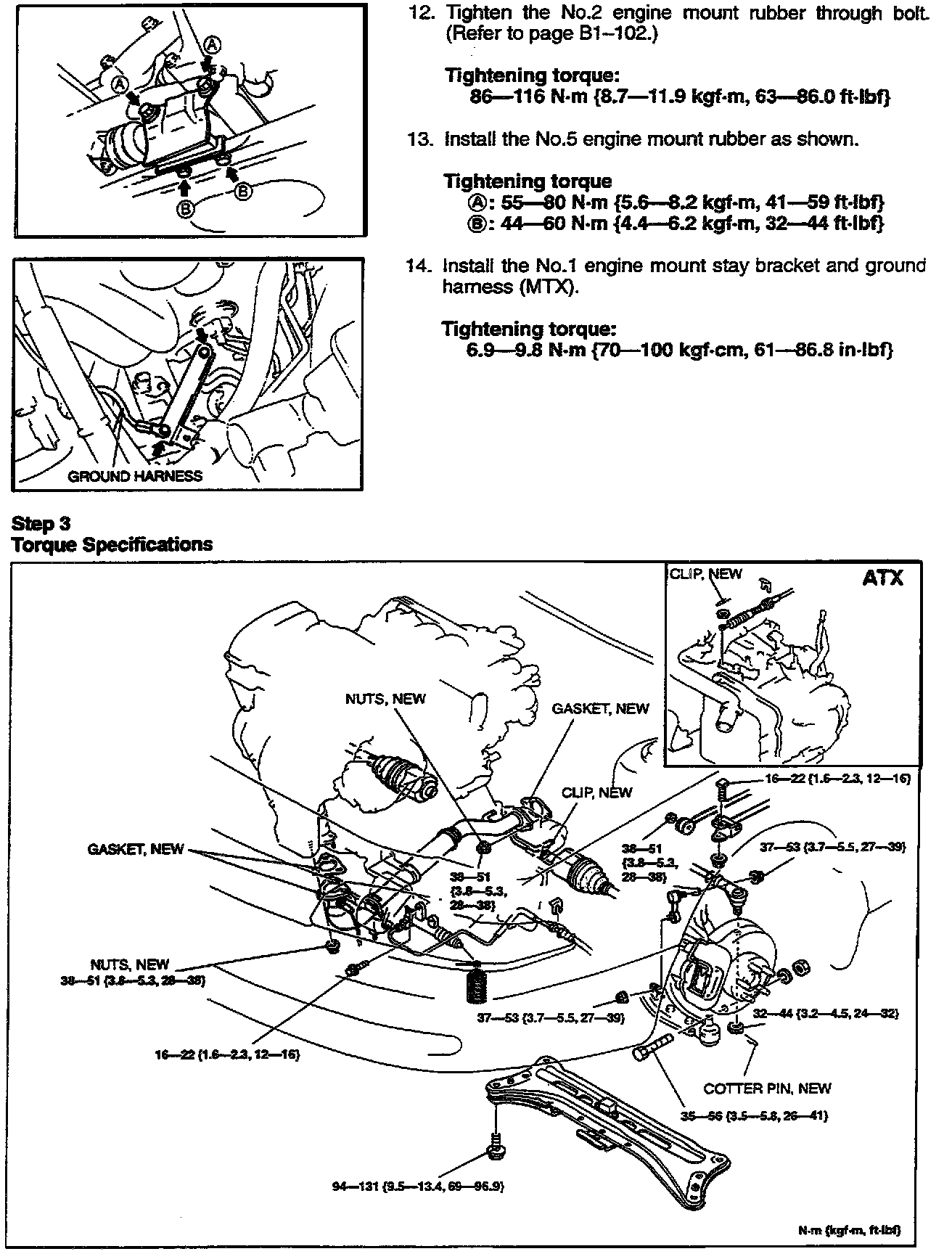 2. Inspect the torque of all engine mount bolts (bracket and rubber bushing bolts).