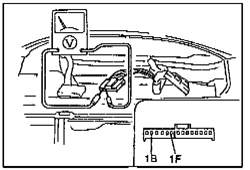 2. Measure the voltage between terminals 1B (R/B) and 1F (GY/L) of the instrument cluster connector while turning the front wheels slowly.