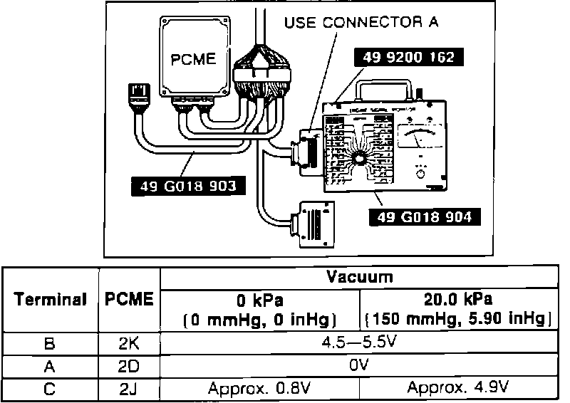 4. If not correct at terminal 2J, check wiring harness and PCME terminal 2K.