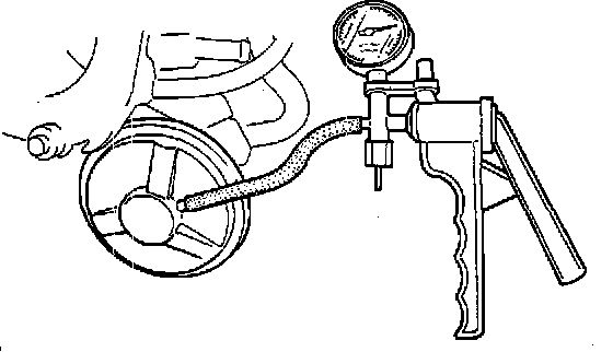 3. Connect vacuum pump to valve and apply 5.91 in Hg (150 mm Hg) vacuum. Verify that engine runs rough or stalls.