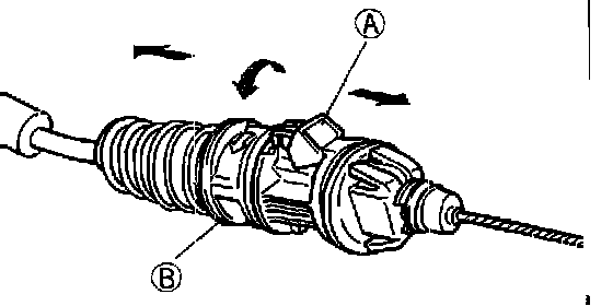 3. If not as specified, adjust free play by turning stopper B while pressing lock button A, with throttle valve fully closed.