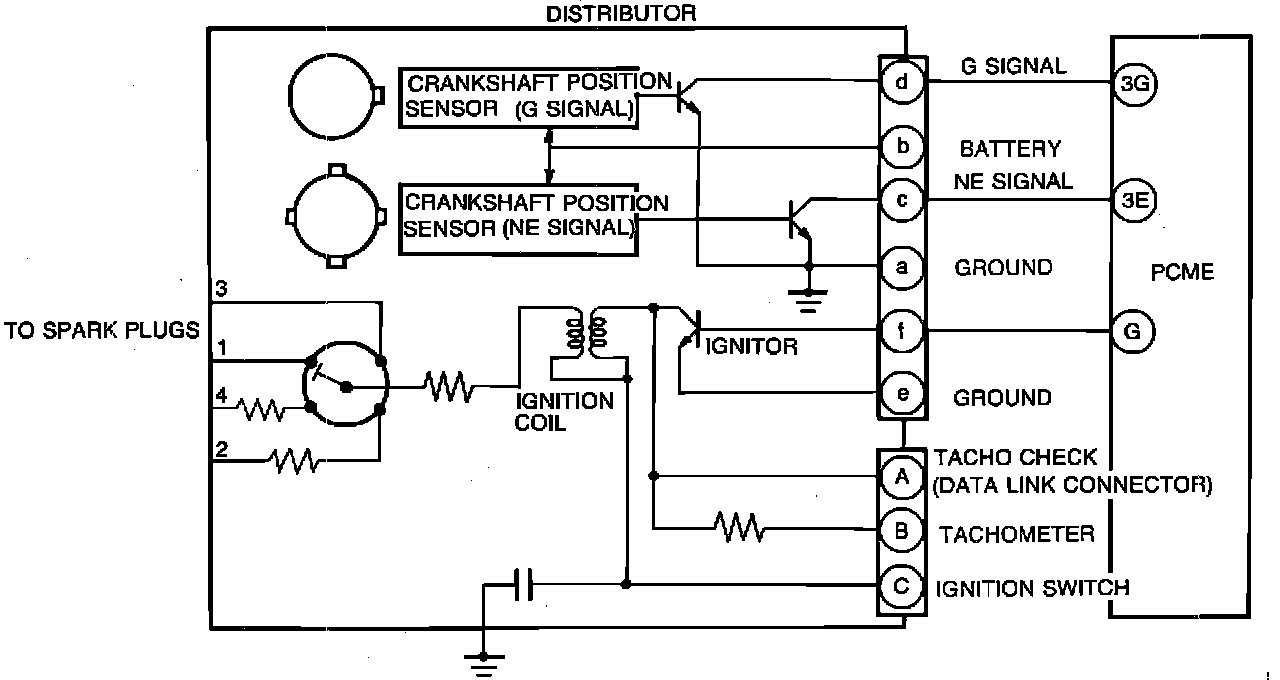 Each time current flow is interrupted, high voltage is induced to fire the spark plugs. Except for initial setting, timing is PCME controlled.