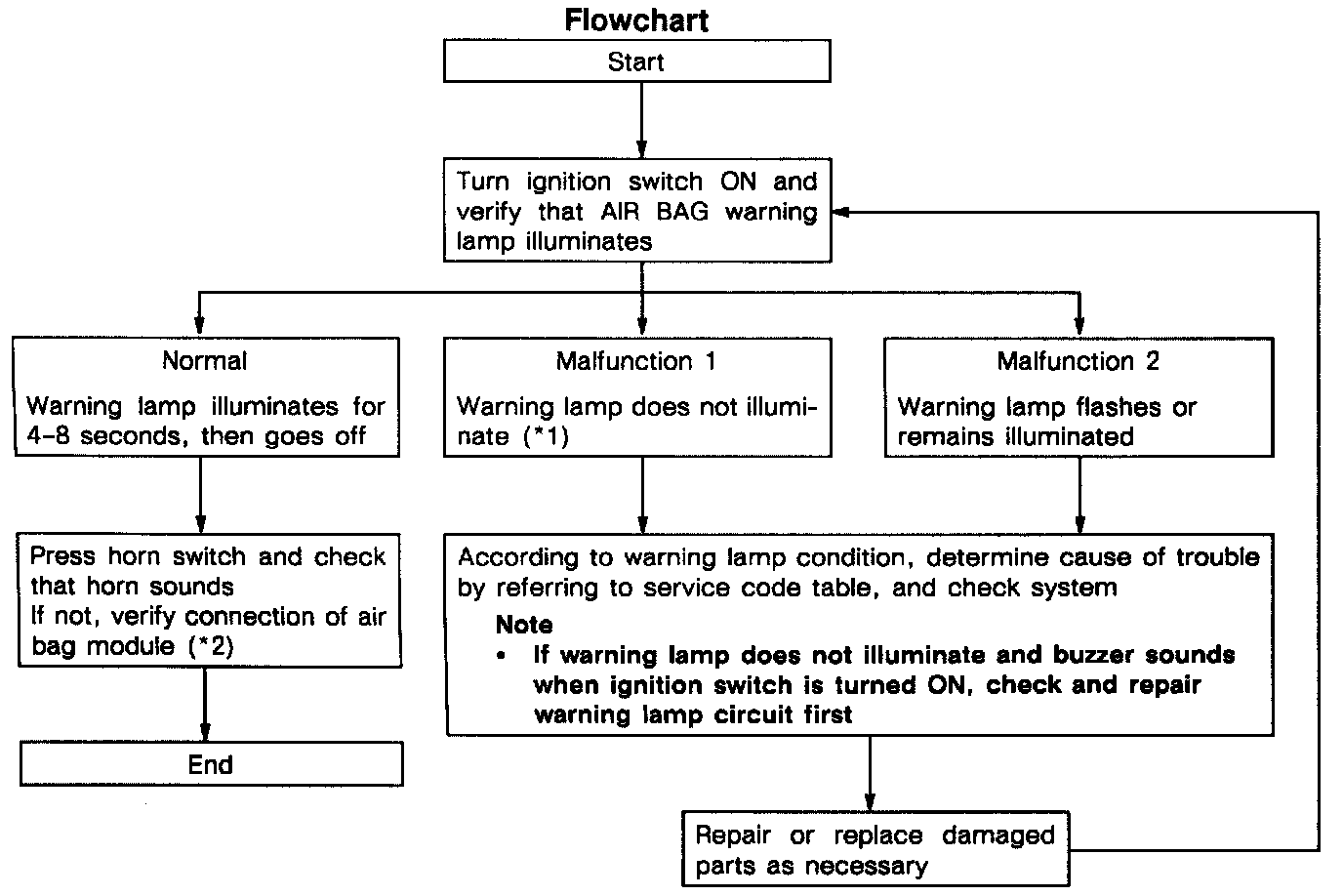 ^ The malfunctioning system can be determined by warning lamp illumination or flashing pattern,
