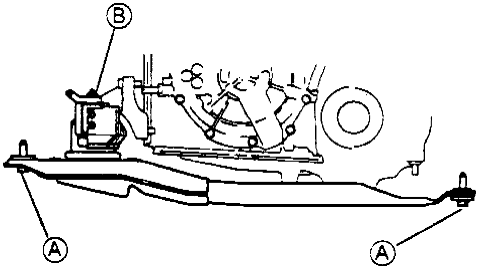 12. Loosely tighten B nut, Fig. 8 and 9, then remove engine support.