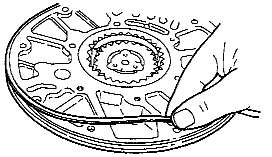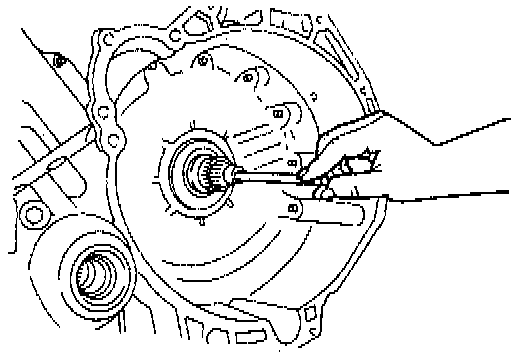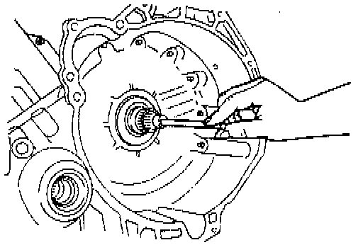 9. Install a large screwdriver through the TSS sensor hole. Do not locate the screwdriver on the reverse clutch hub tabs.