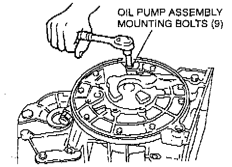 7. Remove the nine (9) pump mounting bolts.