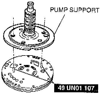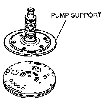 10. Remove the pump while holding the components into the case with the screwdriver. Remove the #1 thrust bearing. This bearing may be attached to the pump support or on the reverse clutch hub.
