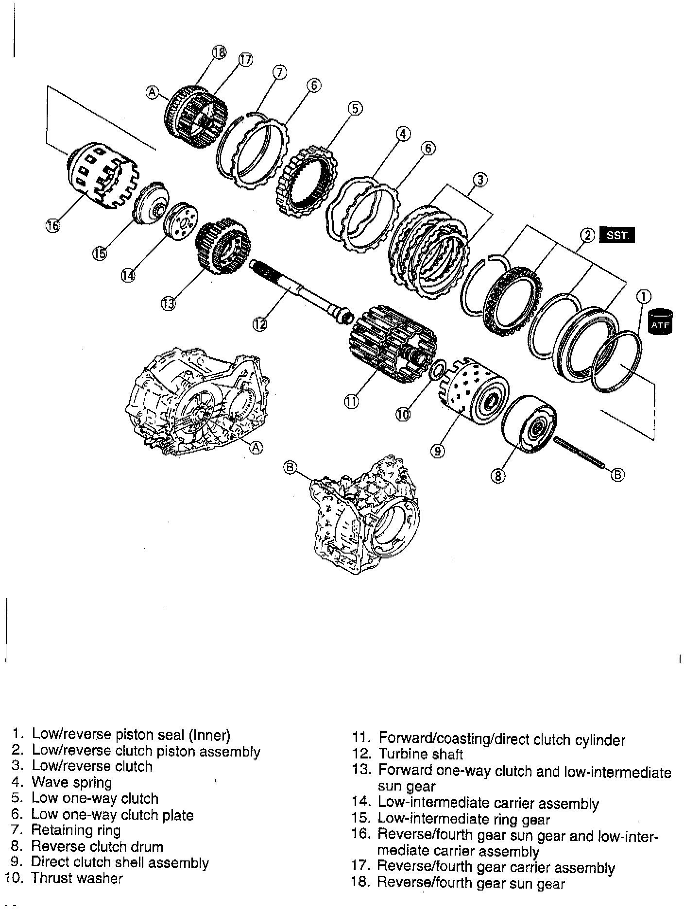 1. If the drive plates or 2/4 band are replaced with new ones, soak the new part in ATF for at least 15 minutes before installation.