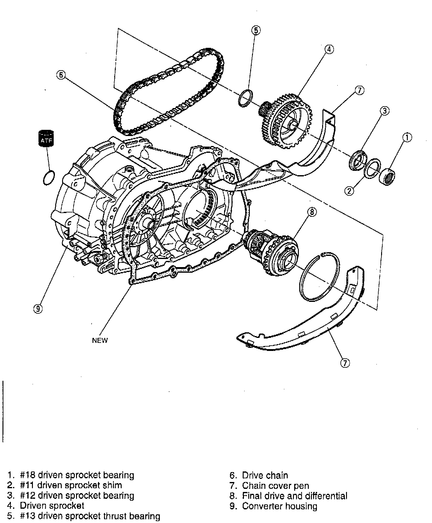 1. If necessary, use the Special Service Tools (SSTs) or equivalent to install the #18 driven sprocket bearing in the transaxle case.