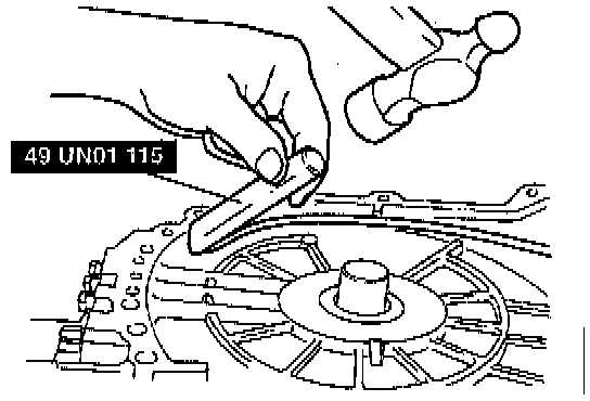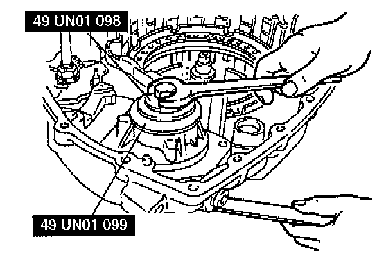 33. Install the low/reverse clutch piston into SST (49 UN01 093) and SST (49 UN01 097). Install the low/reverse clutch piston into the case. Remove the SSTs.