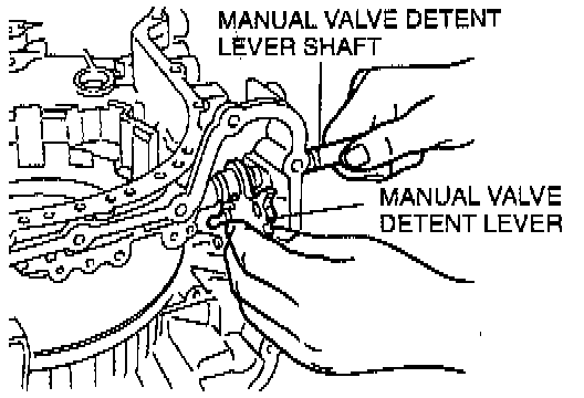 8. Verify that the manual valve detent lever rotates freely. Install the manual valve actuator rod (Z-link).