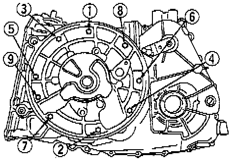30. Install the nine oil pump assembly-to-transaxle case bolts and tighten to 12 - 14 Nm (104 - 127 inch lbs.).