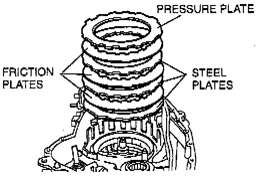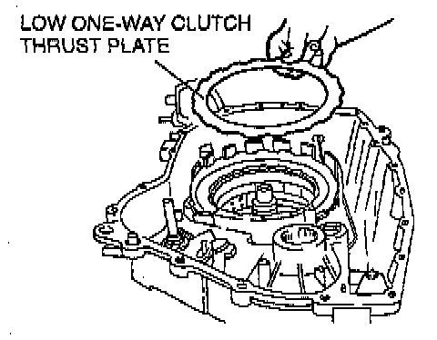 37. Install the low/reverse steel and friction plates, and the pressure plate.