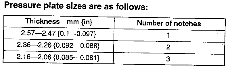 40. The standard clearance is 0.54 - 1.17 mm (0.02 - 0.05 inch). If the clearance is not within the specification, select the proper thickness pressure plate to obtain the standard clearance.