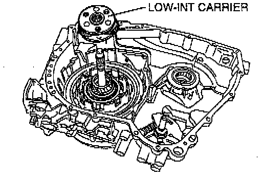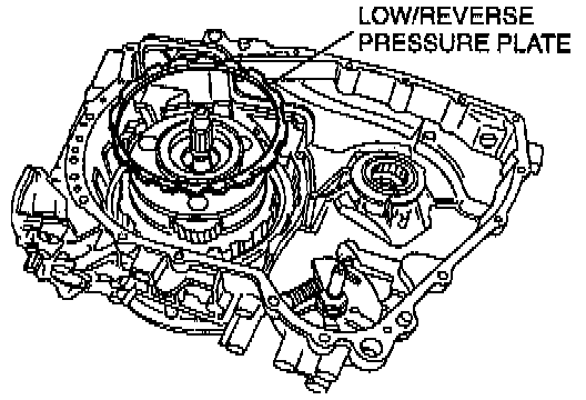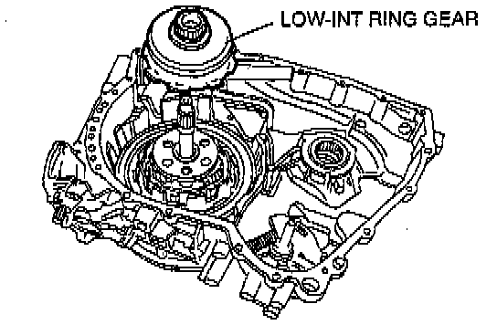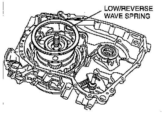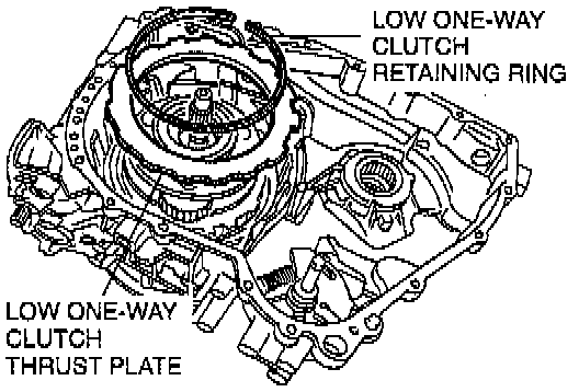 61. Install the low one-way clutch retaining ring. Position the retaining ring ends in an area near the case lugs.