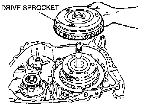 88. Lower the chain drive and its sprockets together in the transaxle case. Verify that both sprockets are seated.