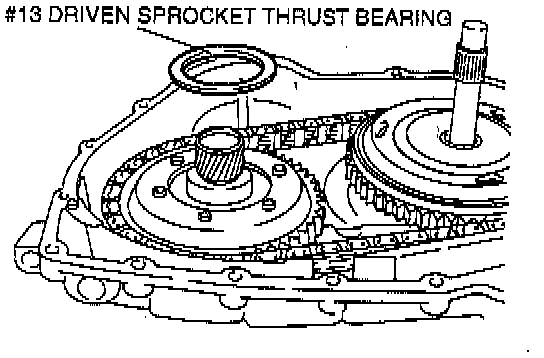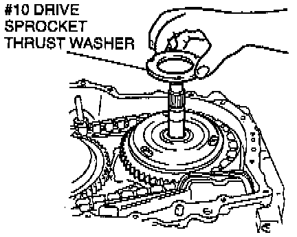 46. Remove the #10 drive sprocket thrust washer (selective fit) from the drive sprocket.
