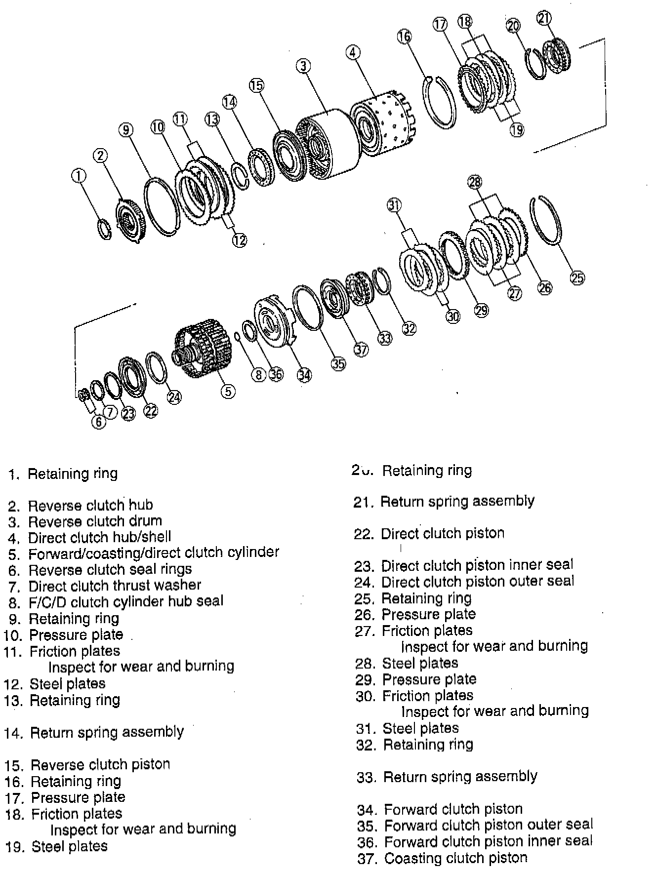 32. Install the reverse clutch plates.