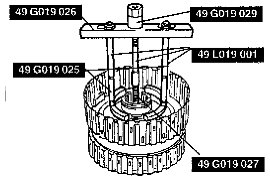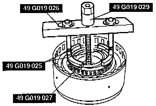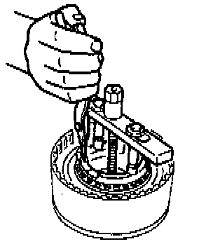 1. Use the Special Service Tools (SSTs) or equivalent to compress the return spring assembly on the reverse clutch.